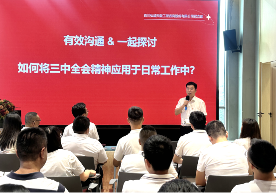四川弘誠(chéng)天毅工程咨詢股份有限公司黨支部高度重視、熱情關(guān)注二十屆三中全會(huì)盛況,于7月30日下午組織公司全體黨員及管理層干部集中學(xué)習(xí),并邀請(qǐng)四川省委黨校黨建研究中心主任王凡教授為大家深刻解讀二十屆三中全會(huì)精神的核心要義,分享其獨(dú)到的見(jiàn)解和寶貴的經(jīng)驗(yàn)。