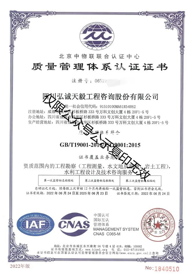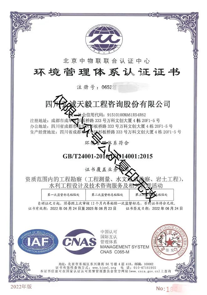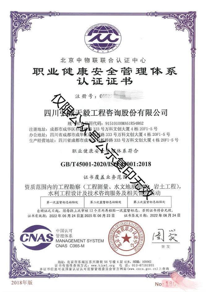6月24日,四川弘誠天毅工程咨詢股份有限公司正式取得三體系證書,即ISO9001(質(zhì)量管理體系認證)、ISO45001(中國職業(yè)健康安全管理體系認證)、ISO14001(環(huán)境管理體系認證)。