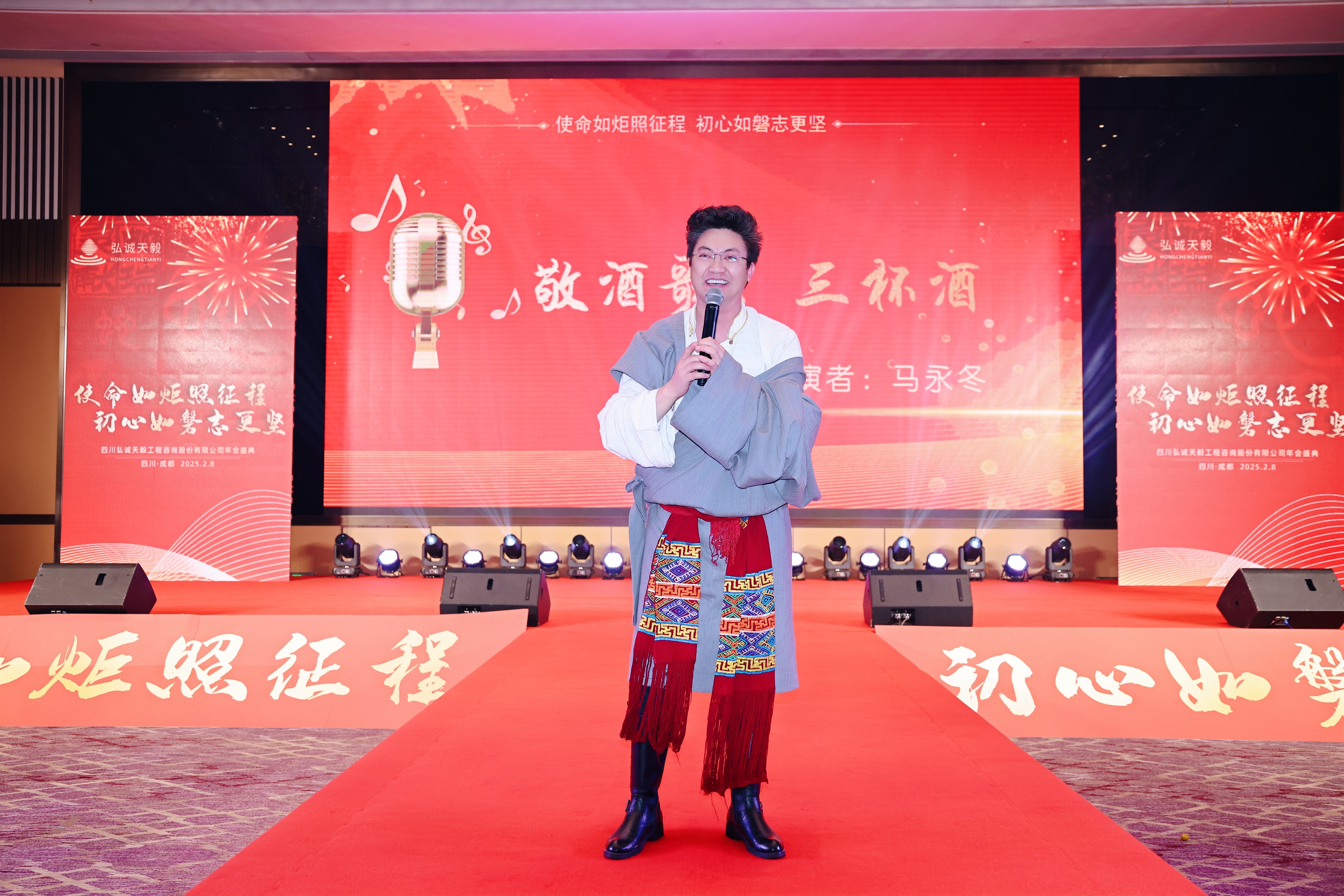 晚會節目絢爛多姿,盡顯弘誠天毅的才情與團隊精神。在歡聲笑語中,藏族同事舉杯高歌,原生歌謠滿載熱情與喜悅,溫暖了整個聚會。歌聲中洋溢著對生活的熱愛、對友誼的珍視,以及對相聚此刻的滿滿喜悅與熱情,點燃了現場的氛圍,讓每個人的心靈都在這份純粹與熱烈中得到了最真摯的觸動。