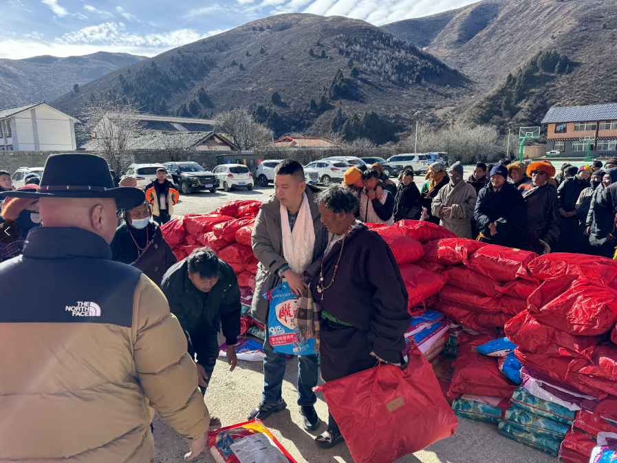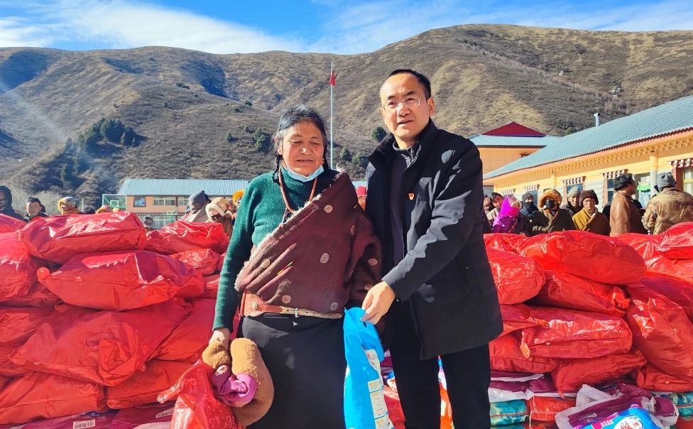 同時(shí)通過(guò)色達(dá)縣水利局向桑桑、德瑪、查啟三村“民族團(tuán)結(jié)進(jìn)家庭”96戶牧戶及脫貧戶60戶,共計(jì)156戶家庭捐贈(zèng)生活物資(包含毛毯、大米、洗衣粉)各一套。