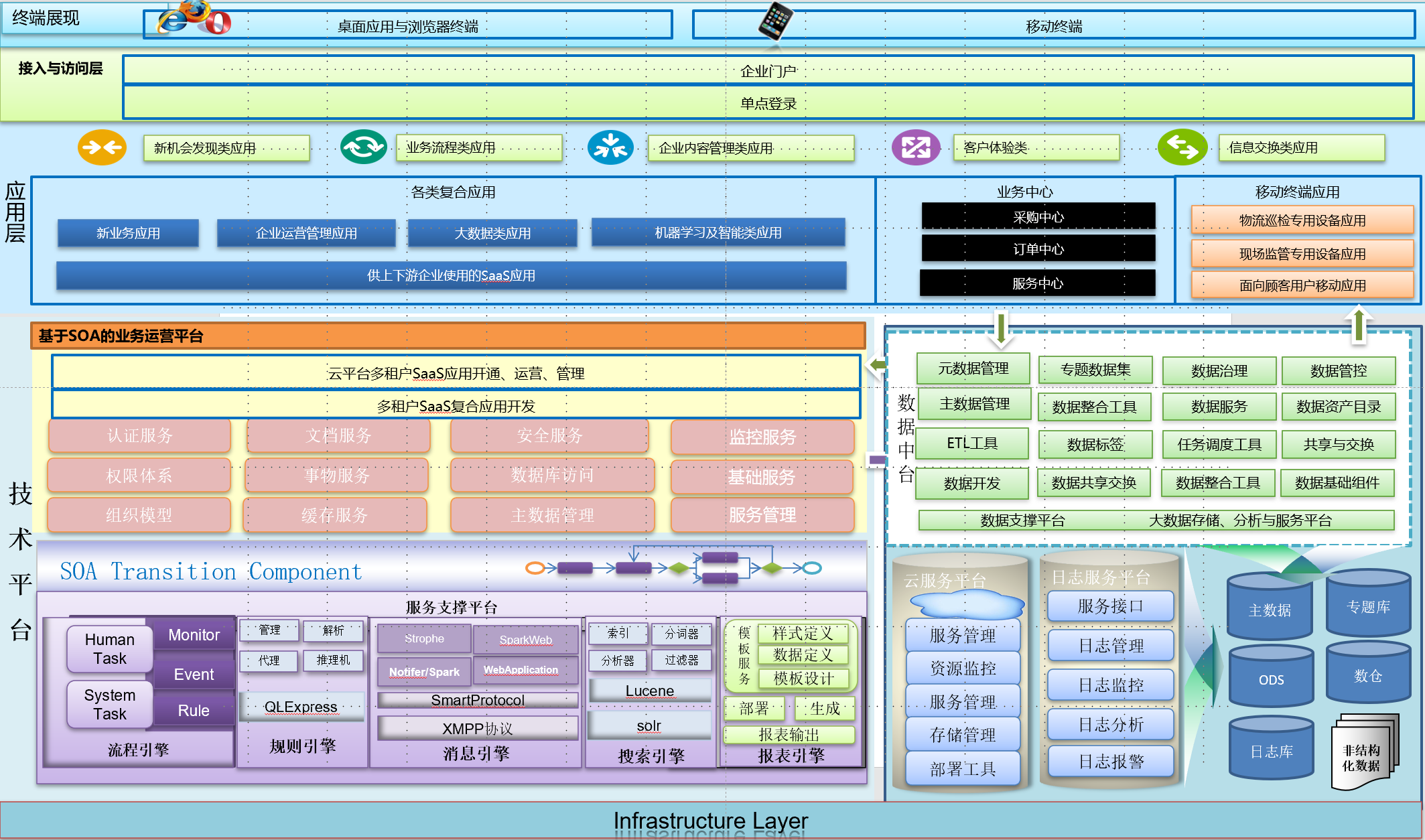 服務(wù)能力是平臺(tái)提供的為企業(yè)實(shí)現(xiàn)各業(yè)務(wù)板塊之間鏈接和協(xié)同,持續(xù)提升業(yè)務(wù)創(chuàng)新效率,確保關(guān)鍵業(yè)務(wù)鏈路的穩(wěn)定高效和經(jīng)濟(jì)性兼顧的思想體系,將企業(yè)常用業(yè)務(wù)以服務(wù)形式下沉,為企業(yè)提供有效的快速應(yīng)變和創(chuàng)新的能力,同時(shí)更好的保護(hù)IT投資。