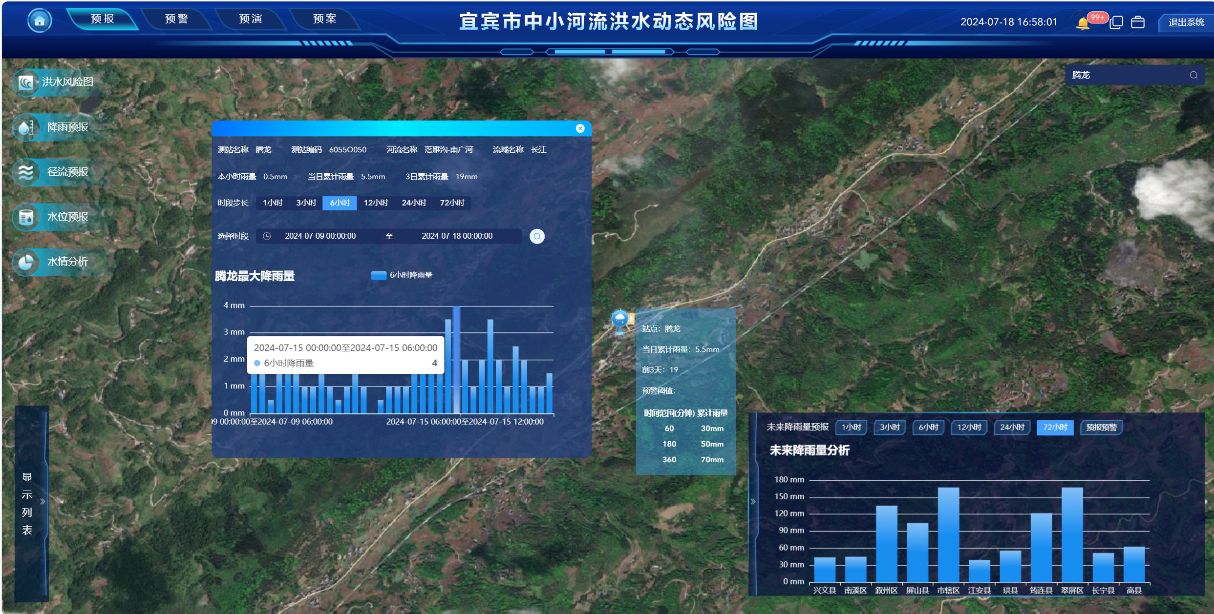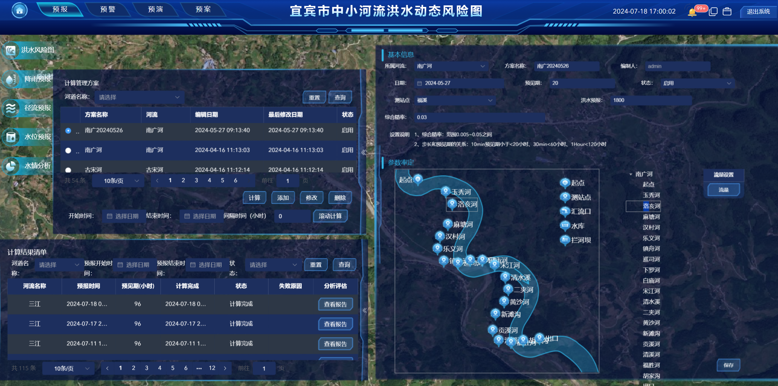 預報:基于實時數據和水動力模型,準確預測中小河流洪水達到的時間、地點、流速、淹沒水深、淹沒范圍等。